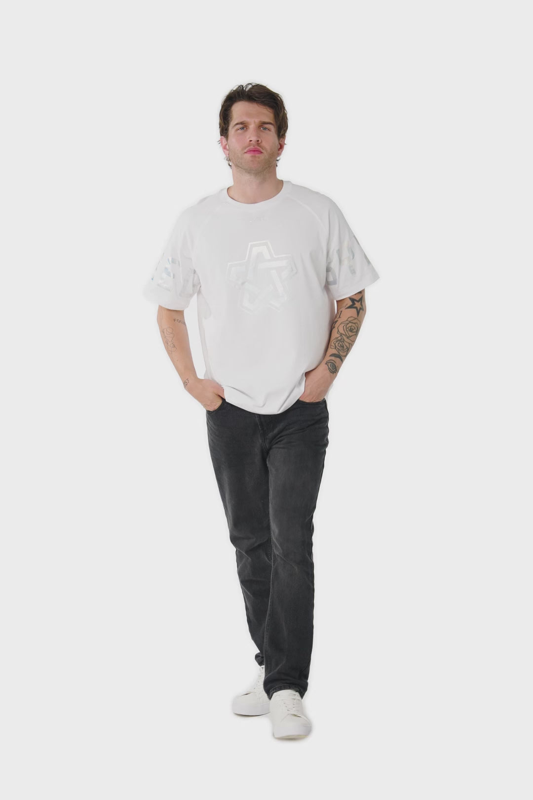 Clean, crisp, and future-forward — the Holo Foil T-Shirt White features a bold iridescent logo that catches the light and shifts with every move. Set on a bright white base, this tee delivers high-impact shine with effortless minimalism.