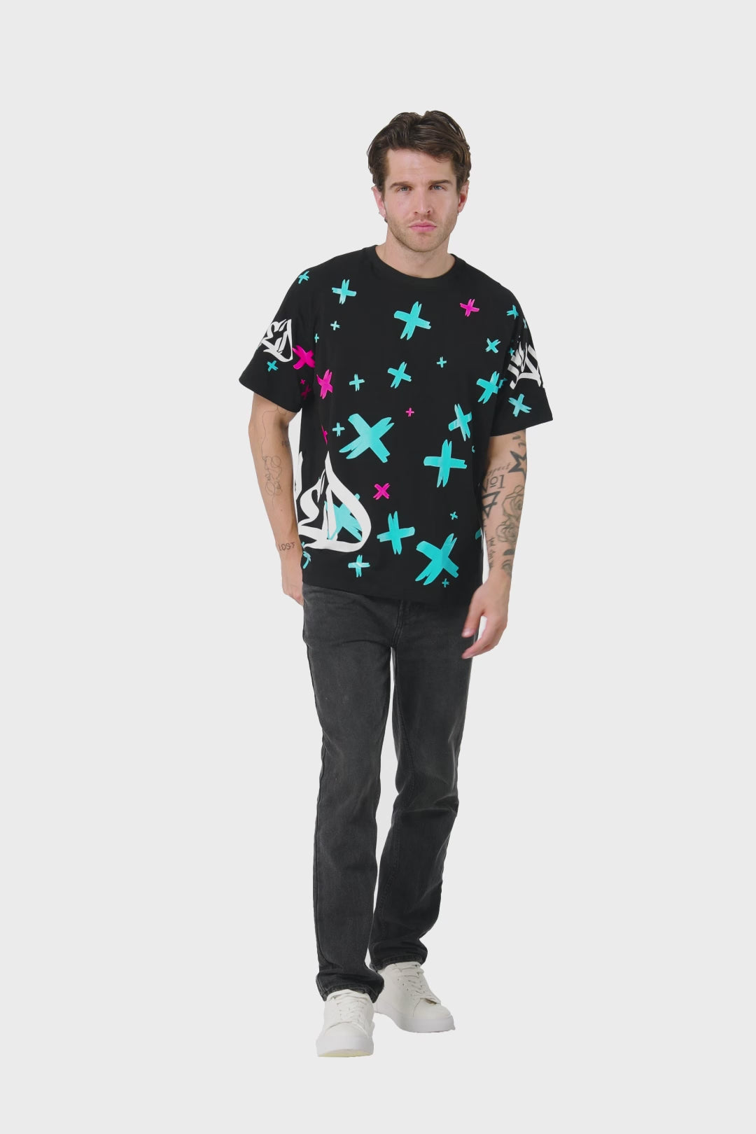 Welcome to style and expressiveness! Our black tee combines classic design with original elements. Adorned with blue and pink patterns and the 'syxed' inscription, it adds dynamism and individuality. Crafted from high-quality materials for everyday comfort. Make a statement and express yourself.
