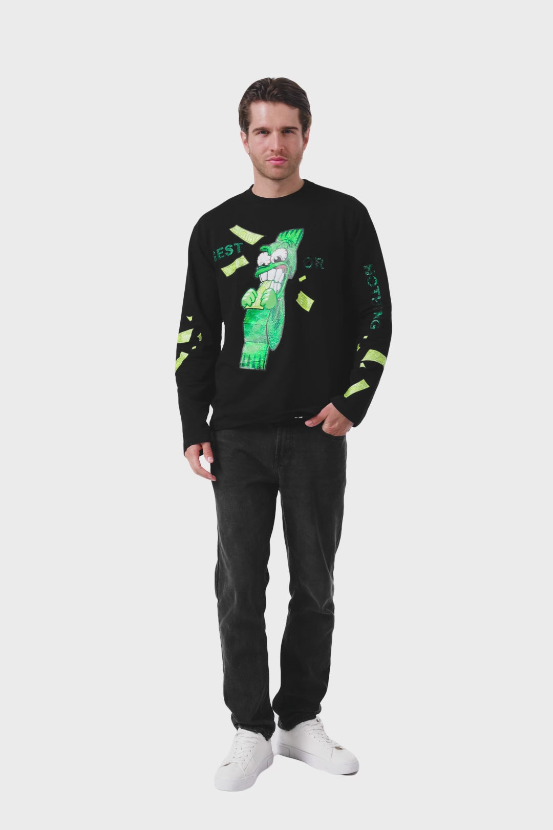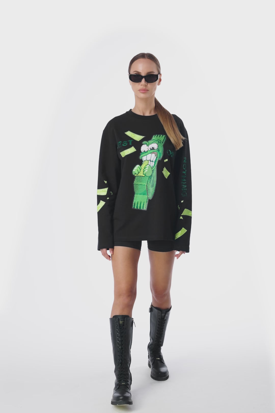 Money talks — the Longleeve Rich Black with rhinestone dollar print is where bold attitude meets refined style. The luxe black base and shimmering dollar sign make it a standout piece for confident, unapologetic looks.